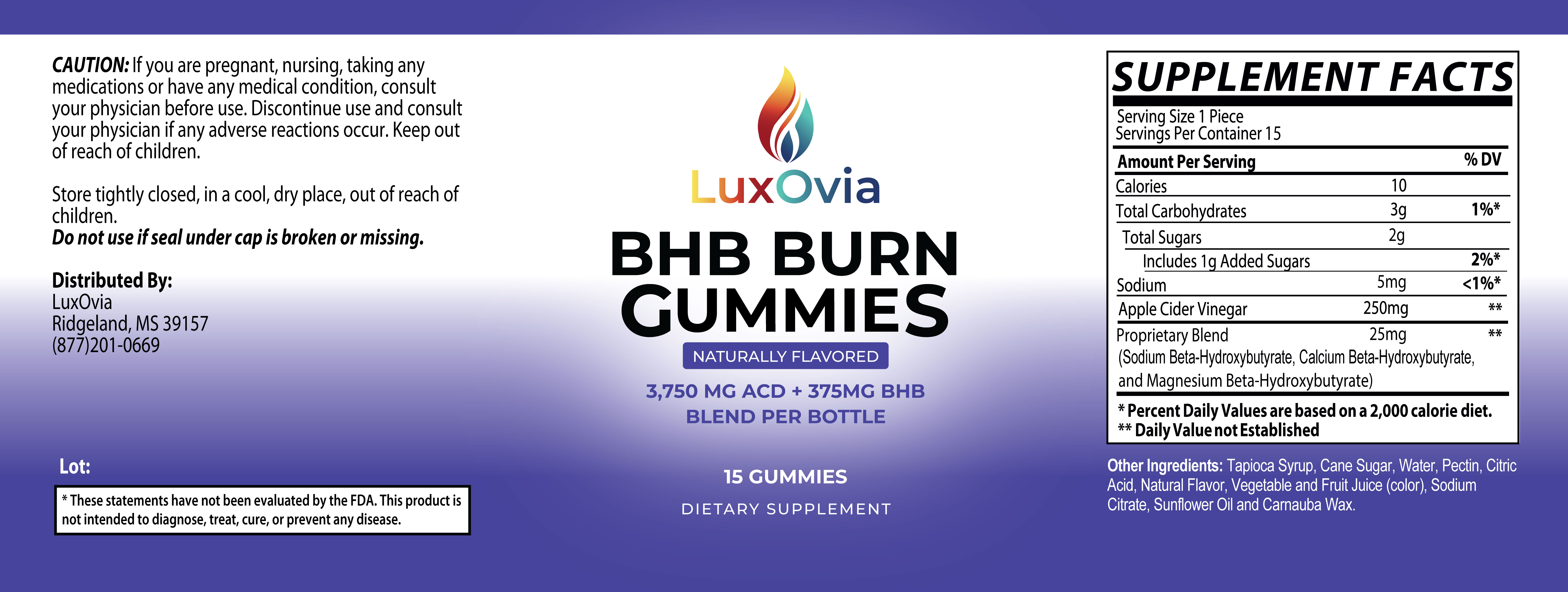 Our BHB Burn Gummies are formulated with a BHB blend and apple cider vinegar (ACV), ingredients commonly included in supplements designed to complement active, mindful lifestyles. With 15 gummies per bottle, this option is ideal for adults who want a short, flexible way to explore BHB gummies without overcommitting.
